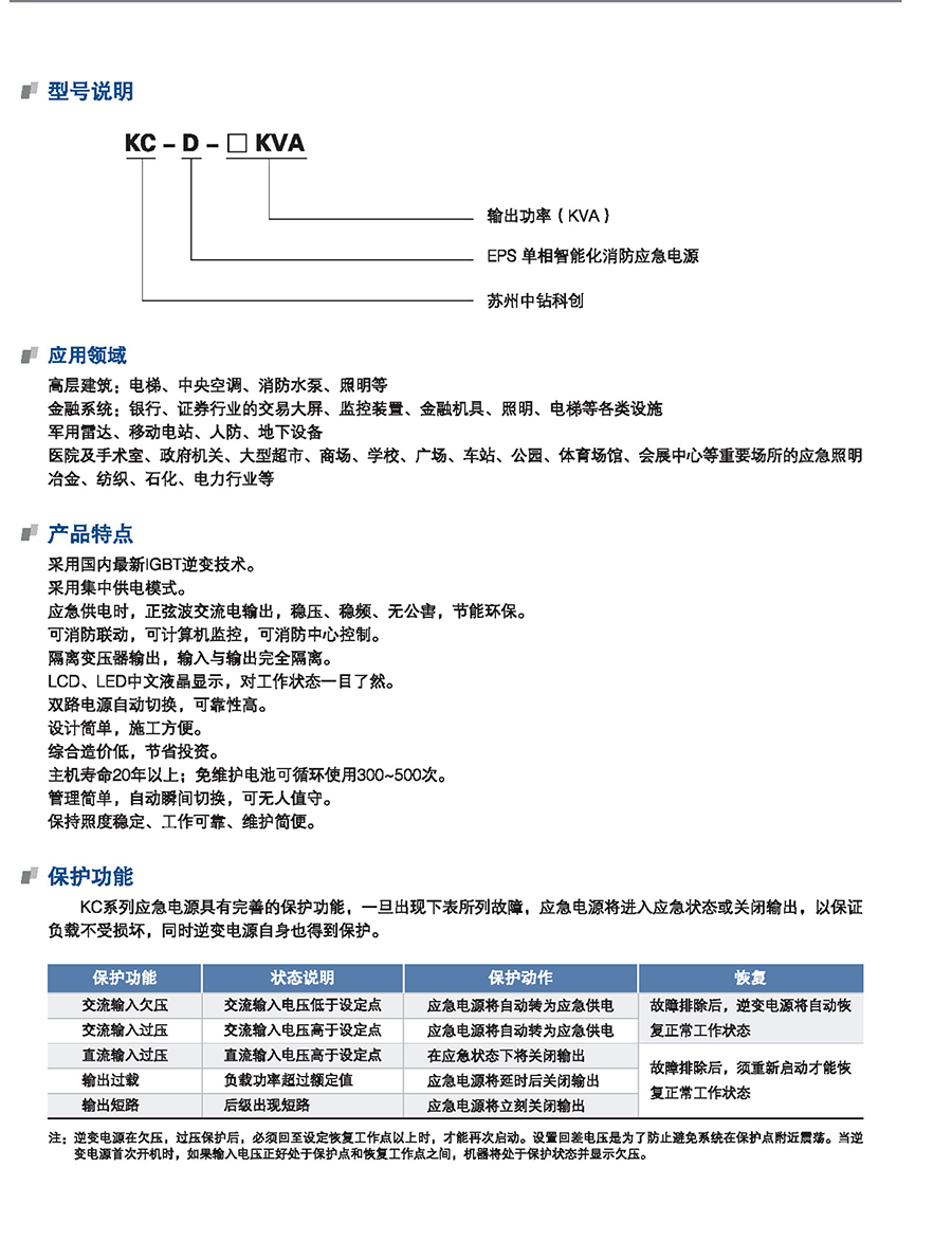 KC-D系列EPS单相智能化消防应急灯具专用应急电源